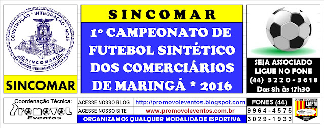 nas datas dos jogos, à critério do SINCOMAR / Maringá, sendo divulgada e
