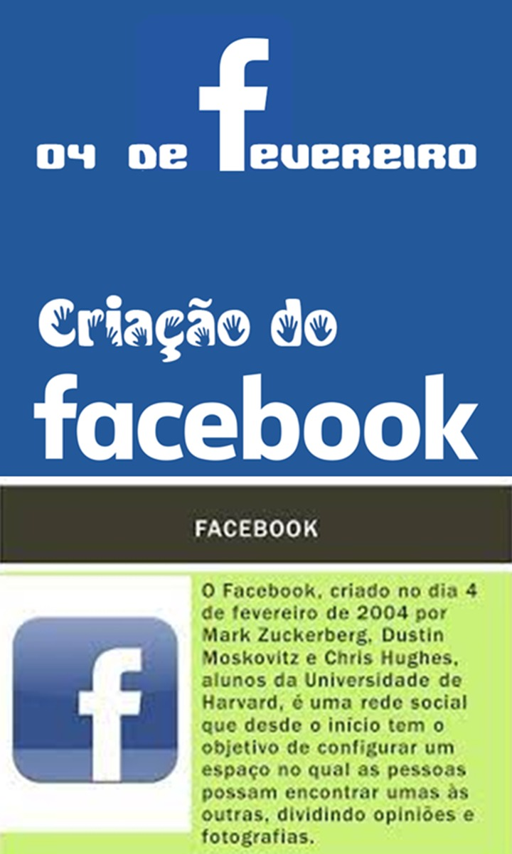 DIA 4 DE FEVEREIRO - DIA DA CRIAÇÃO DO FACEBOOK